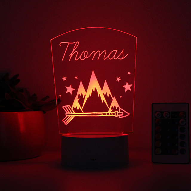 Our night lights can be full customised with any name or text etched into your plaque which will create a unique bedside companion for years to come! These Kid's Night Lights are laser engraved on Acrylic and will never peel or fade. The beautiful and illuminating personalized night lights includes a remote which has 16 color options.