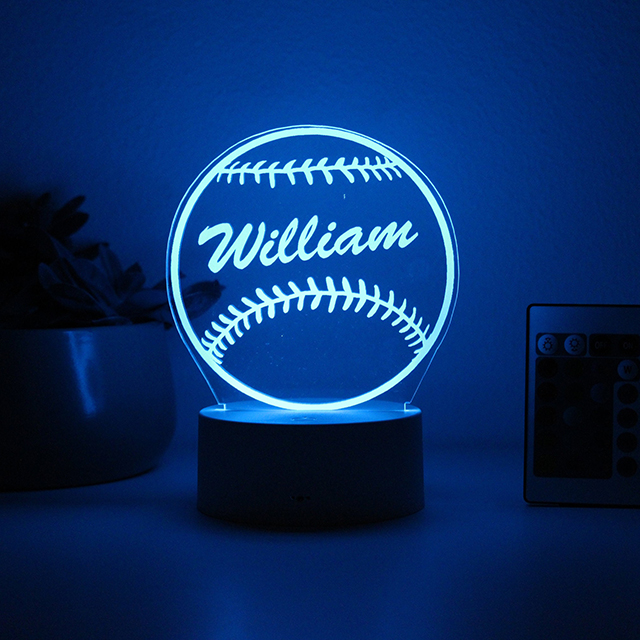 Our night lights can be full customised with any name or text etched into your plaque which will create a unique bedside companion for years to come! These Kid's Night Lights are laser engraved on Acrylic and will never peel or fade. The beautiful and illuminating personalized night lights includes a remote which has 16 color options.