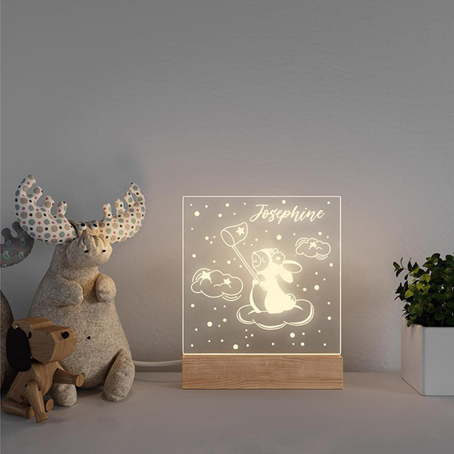 Our night lights can be full customised with any name or text etched into your plaque which will create a unique bedside companion for years to come! You can rest assured that you will receive a high-quality product including your personalised acrylic plaque and wood base but keep in mind that this is not a toy and is for decoration only.