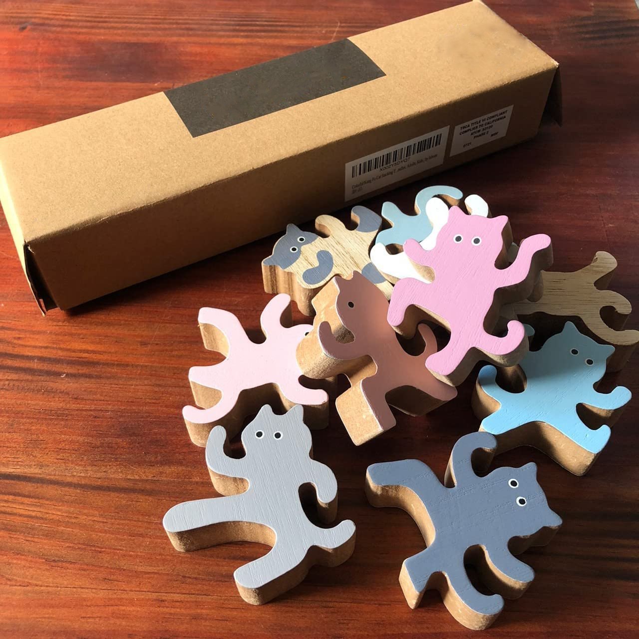 - 🐈 UNLEASH YOUR FELINE SIDE: Our stack toy set has cute wooden stacker cats with curly tails, feet, and hands where you try to hang other cats from and offers more possibilities for creative play than stacking cups and ring stacker sets.