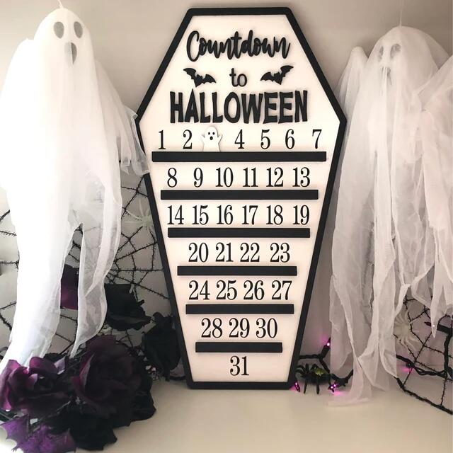👻Countdown to Halloween coffin calendar with moveable ghost is great for Halloween lovers or a perfect gift to a friend or neighbor etc.🎁
