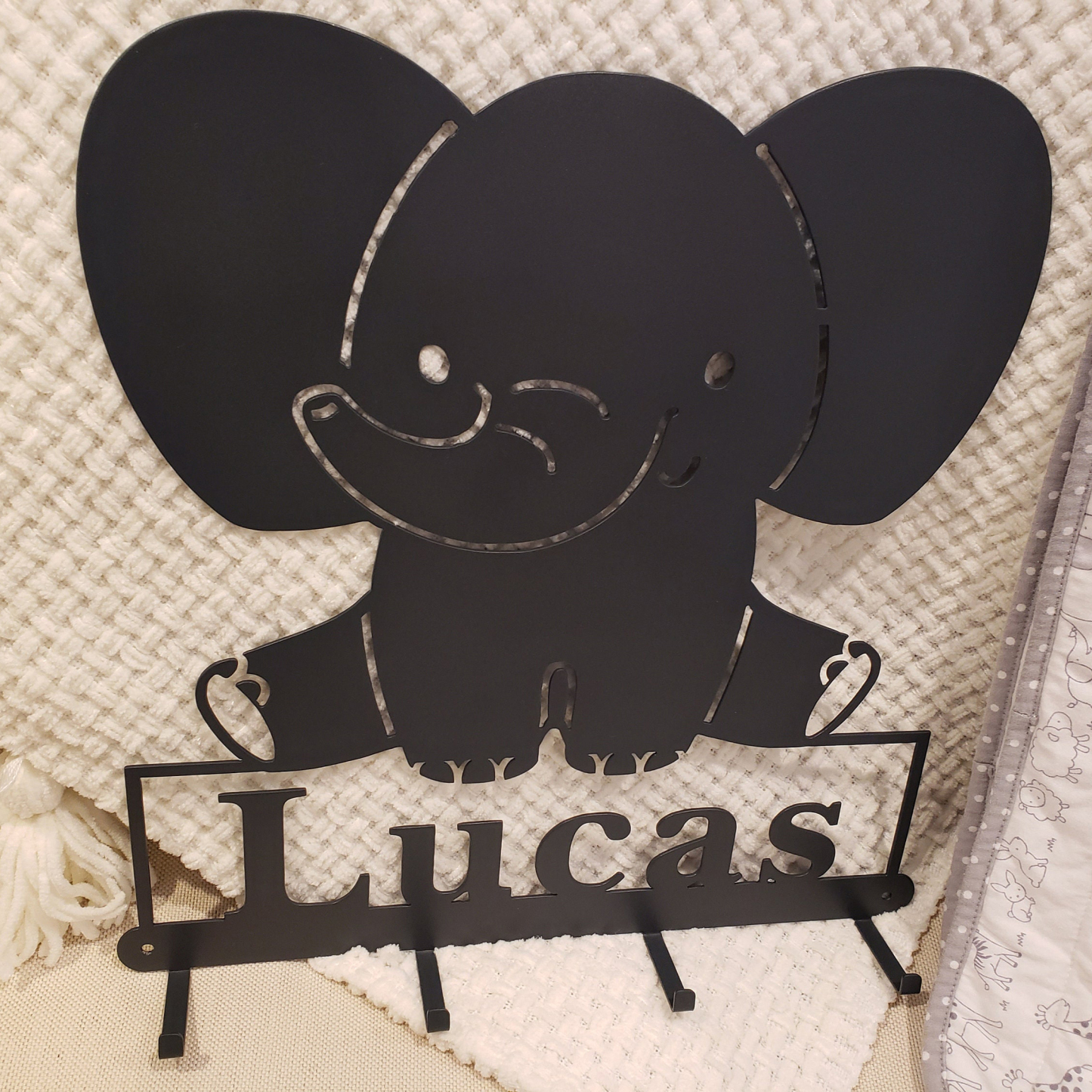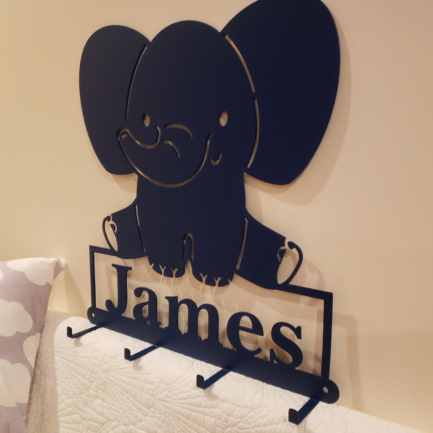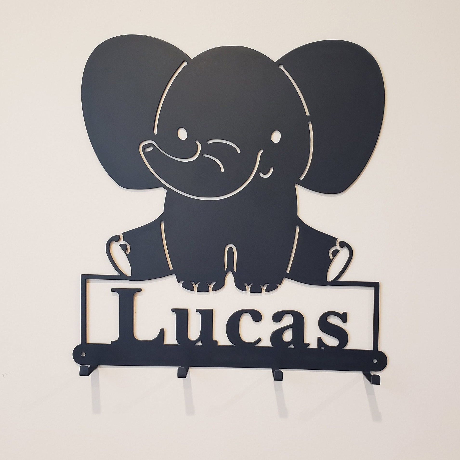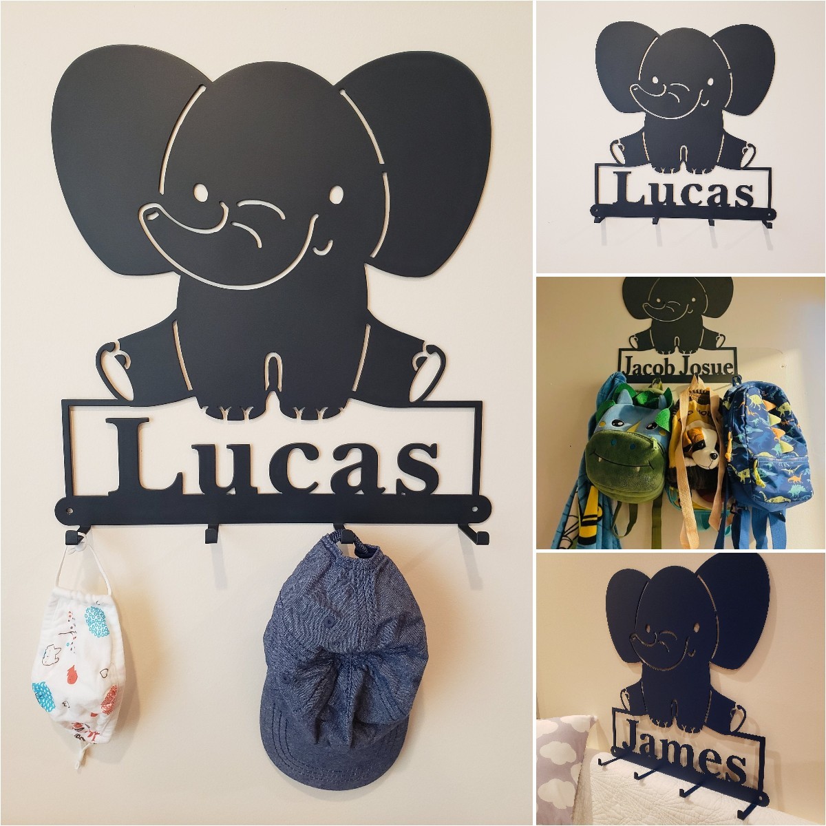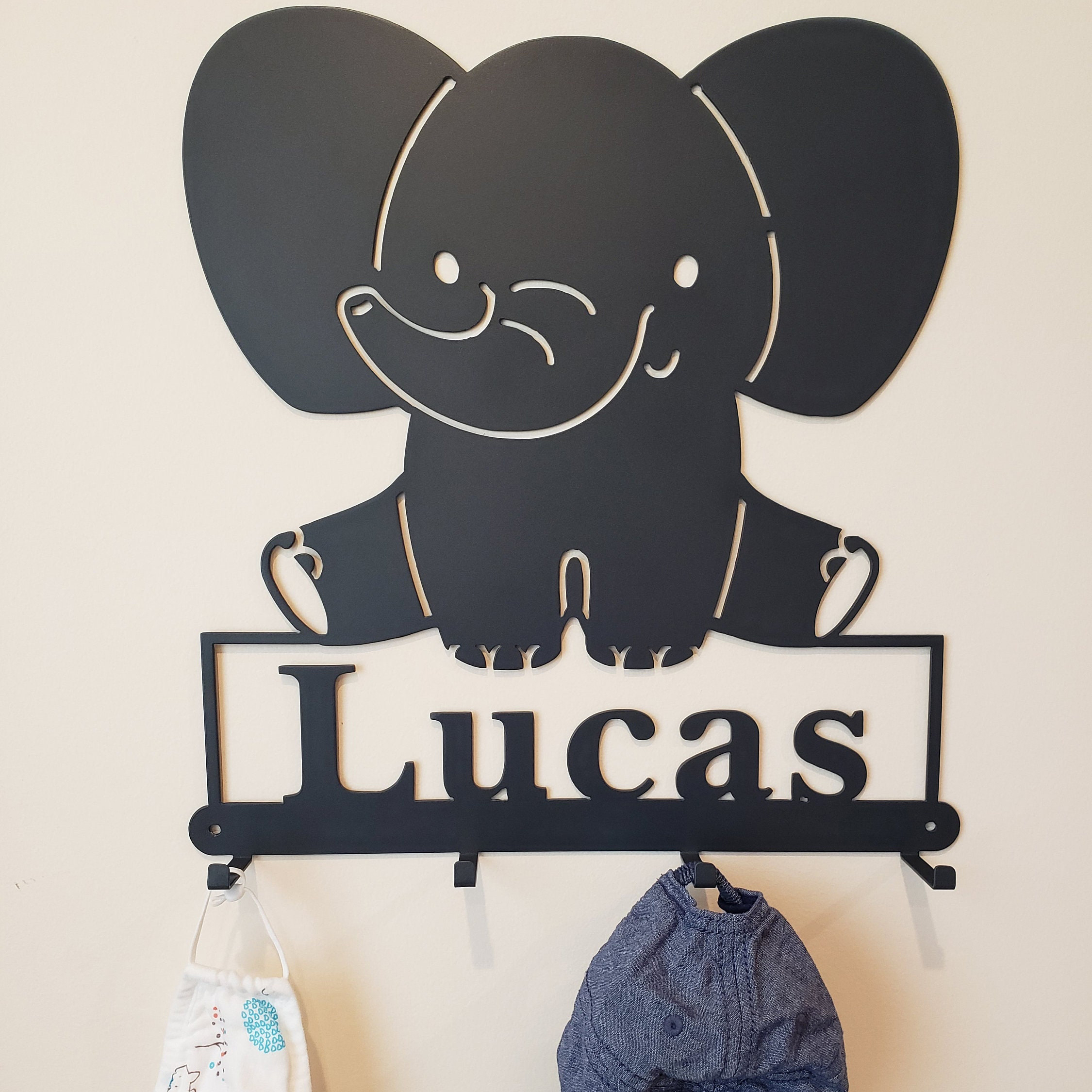🥰This Elephant is so Cute hanging on your kids wall or door. It's great for hanging kids coats, masks, sweat shirts, hats, headbands, bookbags, towels, etc.