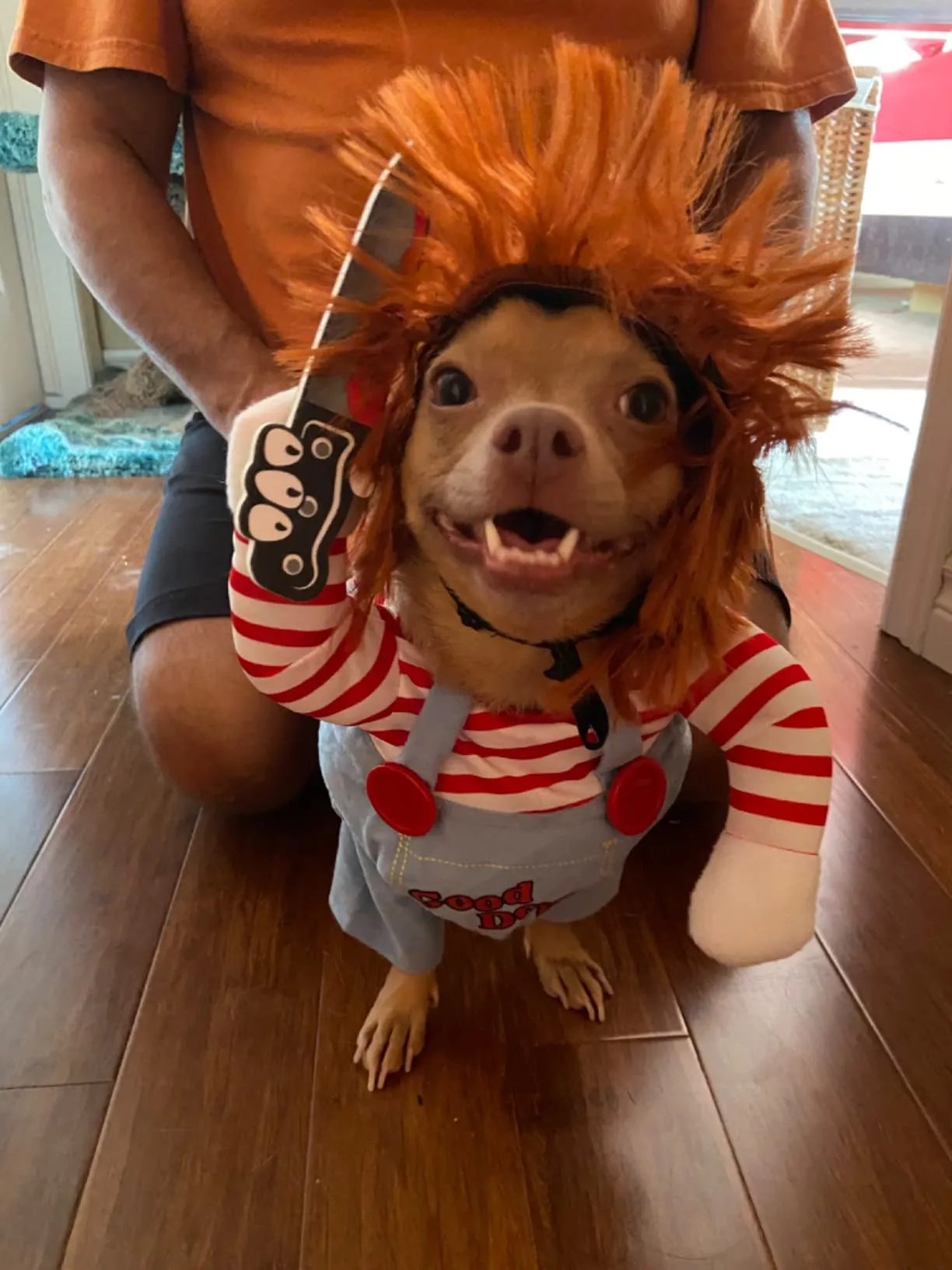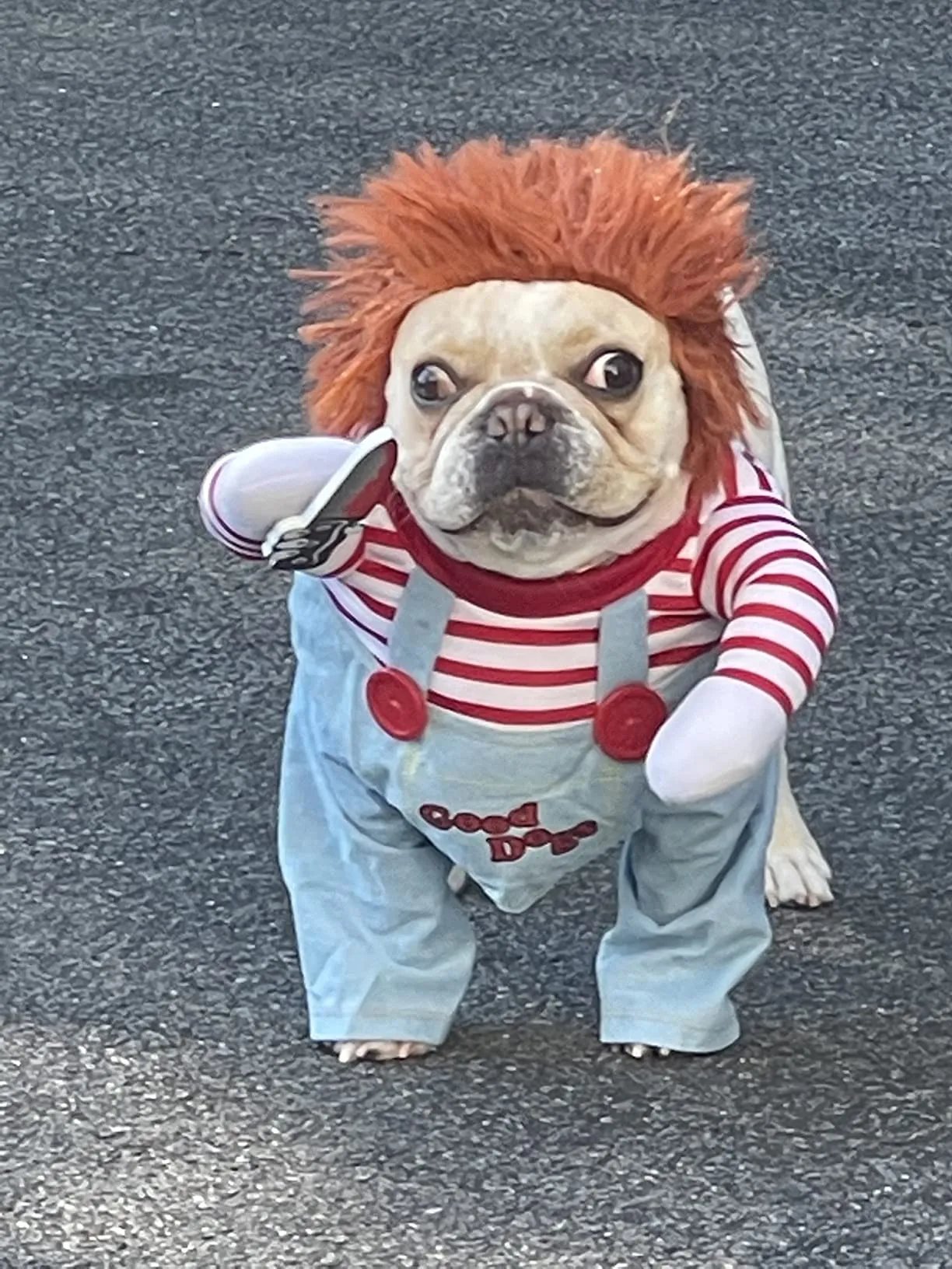 Unleash the scary fun with the deadly puppet dog costume!