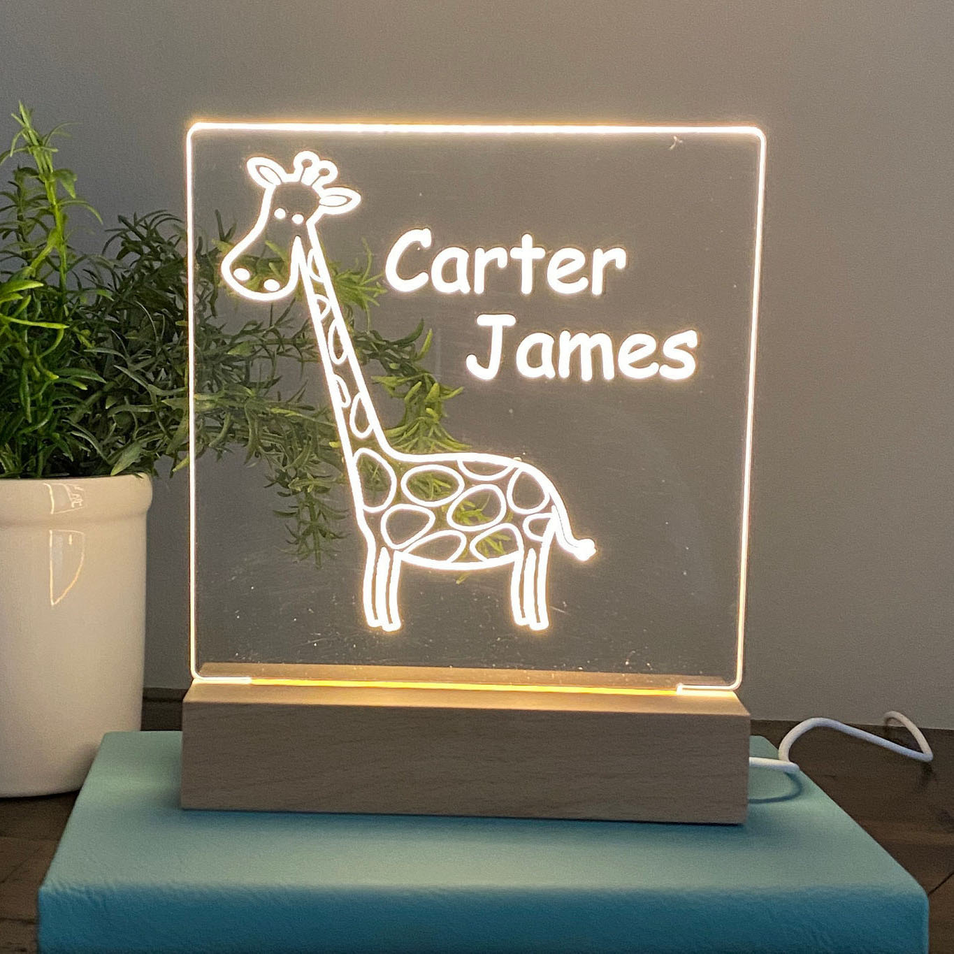 💖This Personalized Kids Name Night Light has a cute Giraffe design and kids names to create a lively look and a sweet setting for a kid's night out.