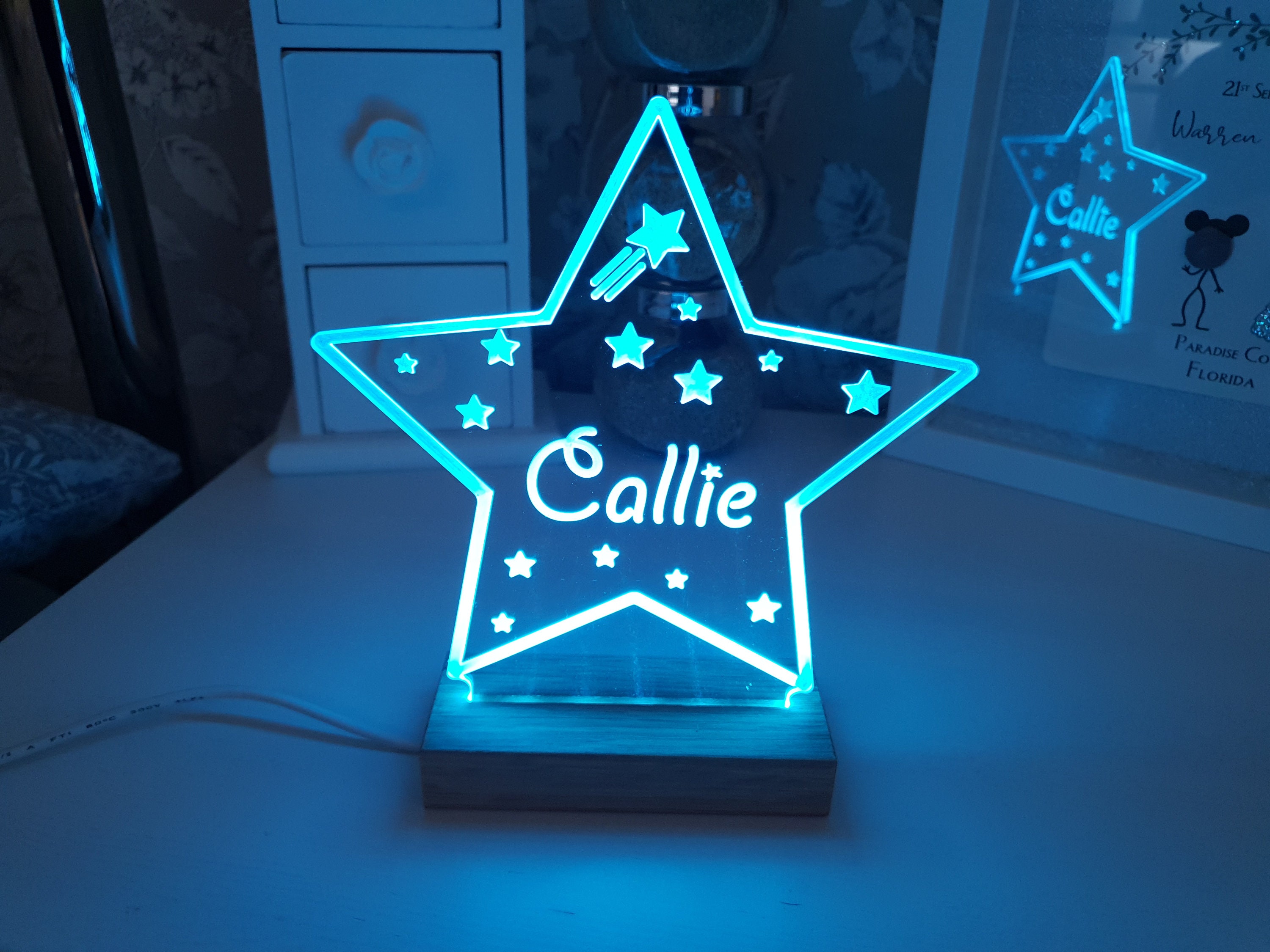 Our night lights can be full customised with any name or text etched into your plaque which will create a unique bedside companion for years to come! You can rest assured that you will receive a high-quality product including your personalised acrylic plaque and wood base but keep in mind that this is not a toy and is for decoration only.