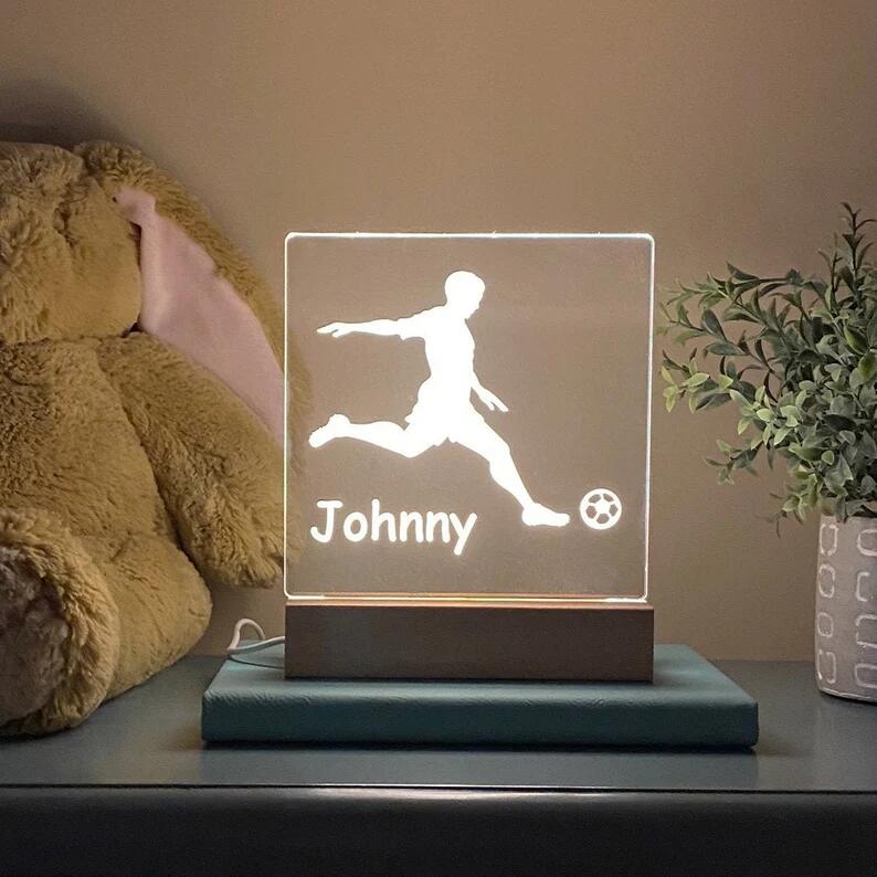 💖This Personalized Kids Name Night Light has a cute Soccer design and kids names to create a lively look and a sweet setting for a kid's night out.