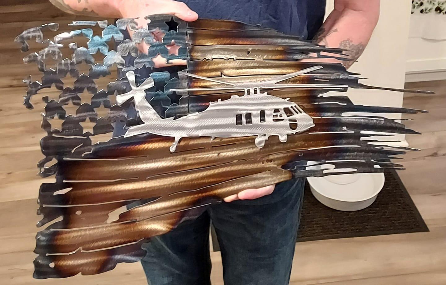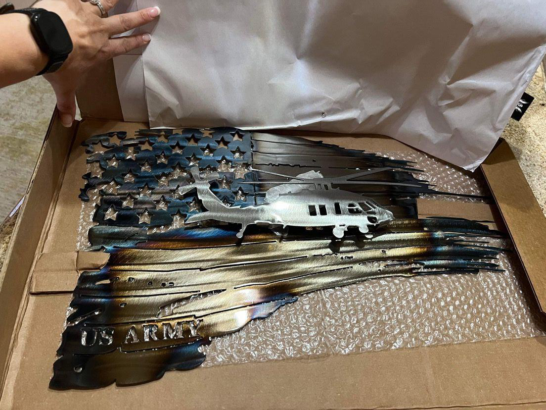 🚁🚁It's great for hanging on the inside your home as a sign of your patriotism and your faith. This beautiful hand made Tattered American Flag representing our Great United States military was created using a skilled technique called heating.